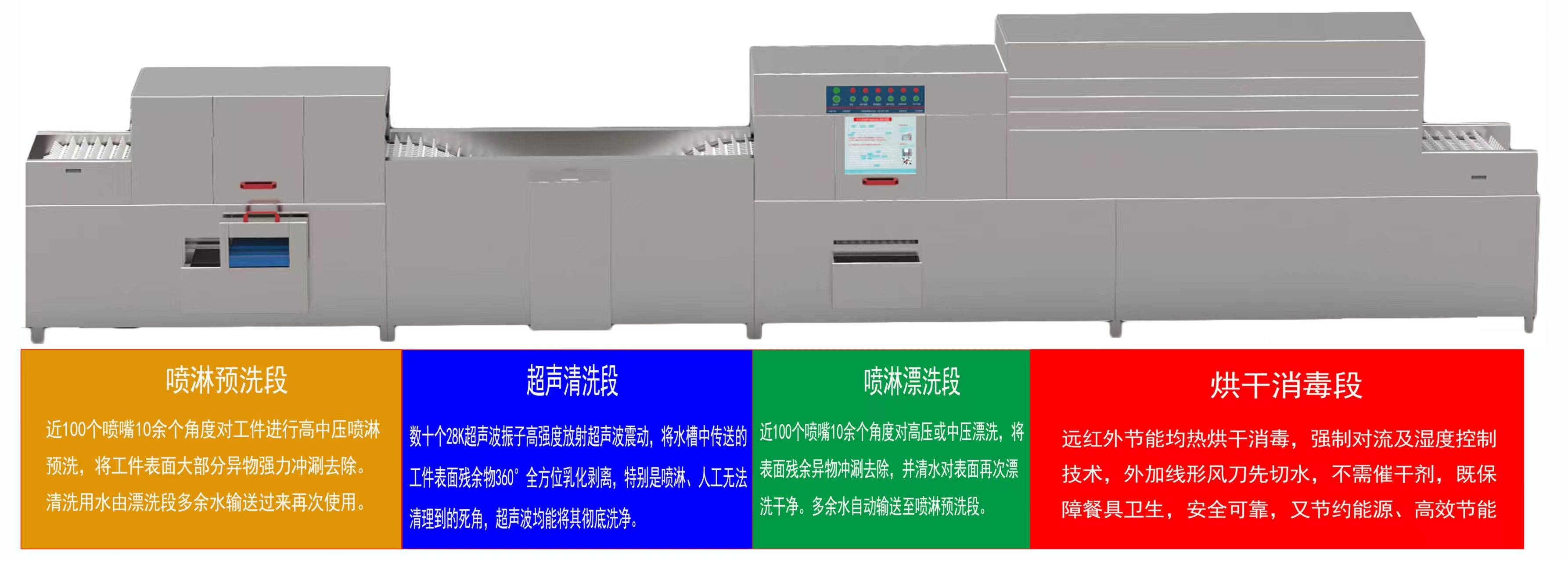 上超全自動超聲波洗碗機:學校飯?zhí)酶咝н\作與健 一、高效清洗,節(jié)省人力?學校飯?zhí)糜貌腿藬?shù)集中且數(shù)量龐大,每餐結(jié)束后堆積如山